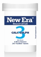 NEW ERA TISSUE SALTS NO 3 CALCIUM SULPHATE 240T Description: Blood constituent. Pimples during adolescence, skin slow to heal, sore lips. Ingredients: 6X CALC. SULPH. Calcium Sulphate Directions: Adults: Dissolve 4 to 8 tablets on or under the tongue 3 times per day. Children to 12yrs: Half dosage. These may safely be taken with other supplements or medicines.
